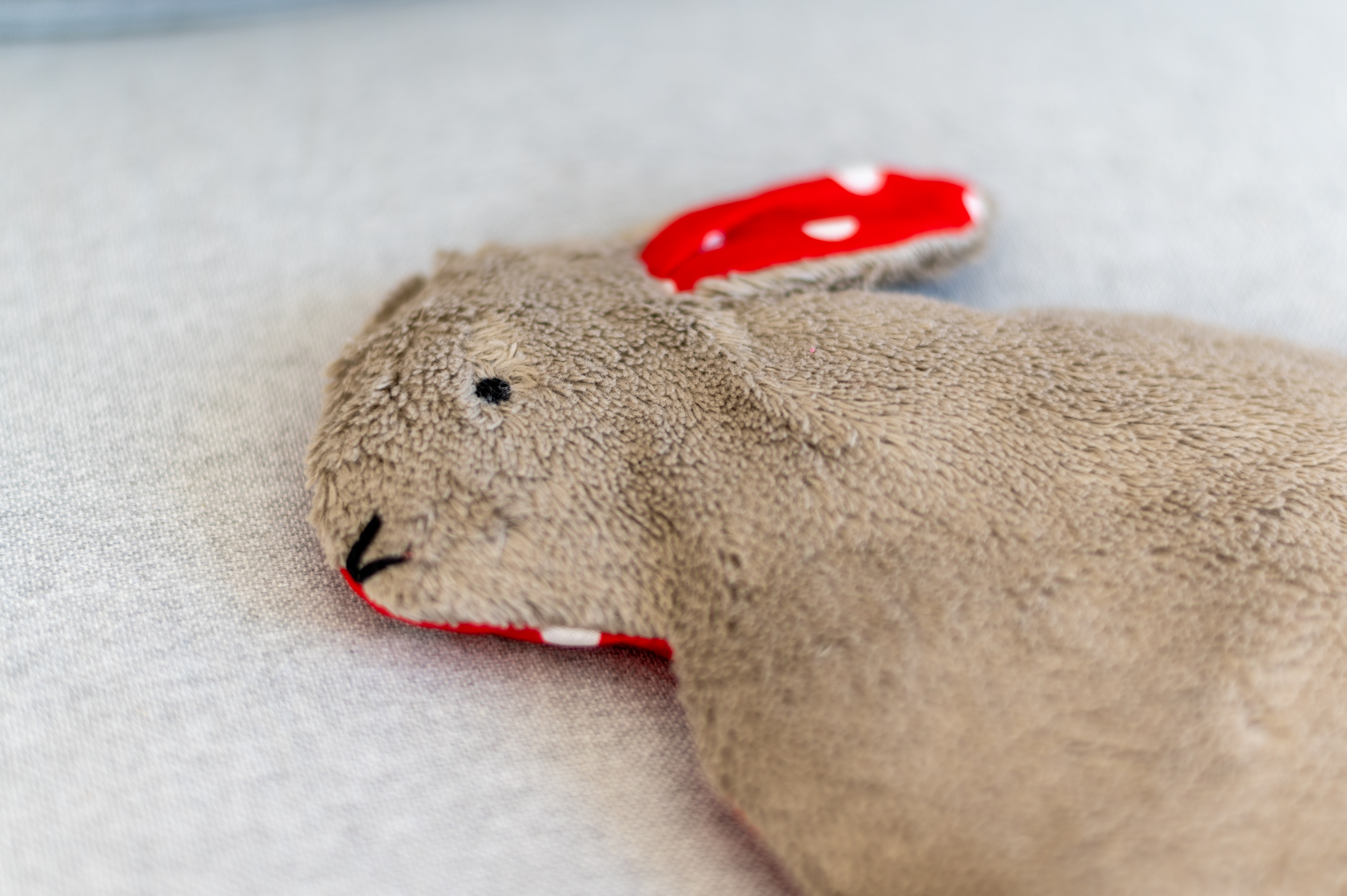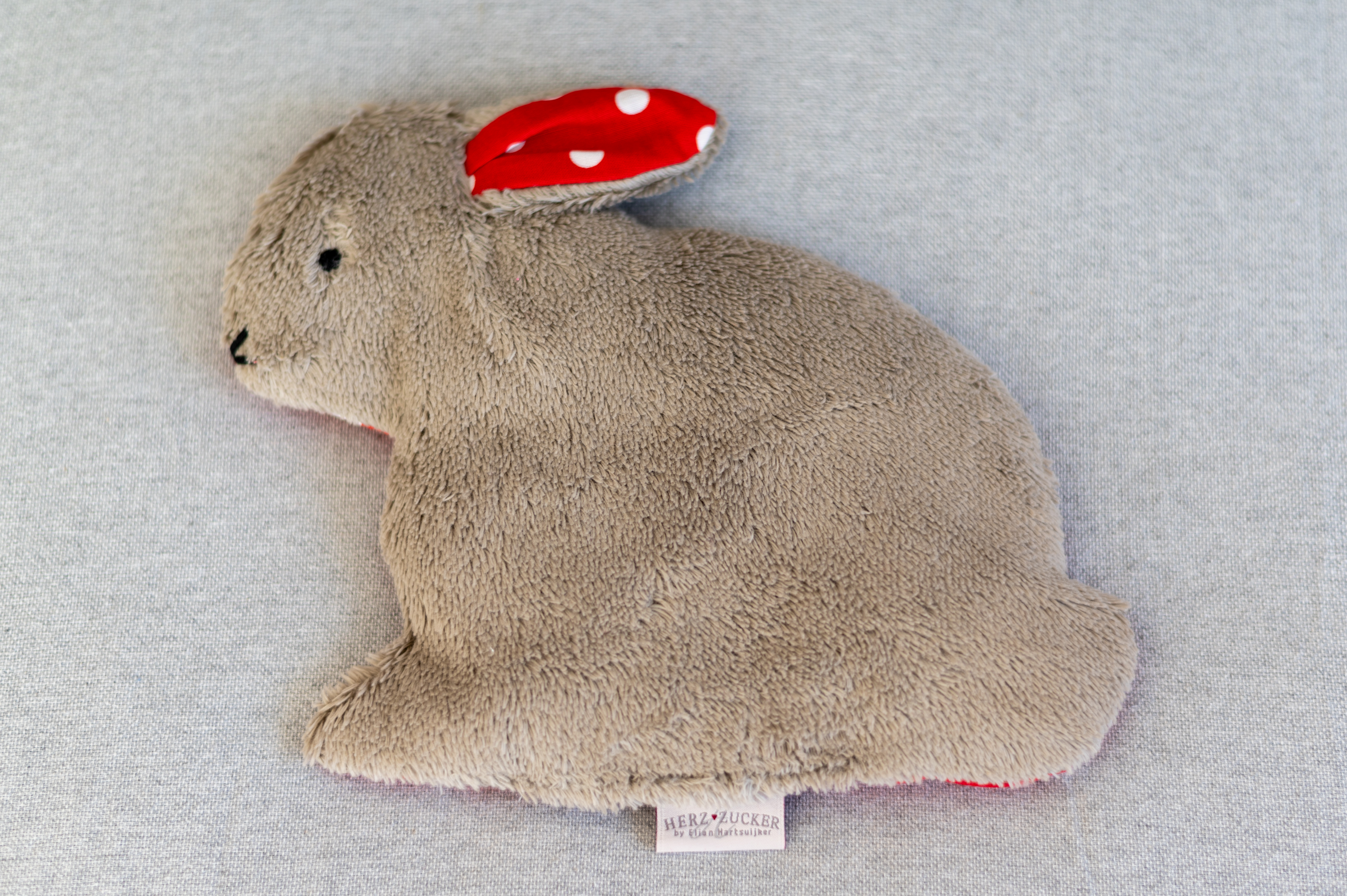 Kinderkissen Hennes der Hase mit Traubenkernfüllung - Bio Plüsch
