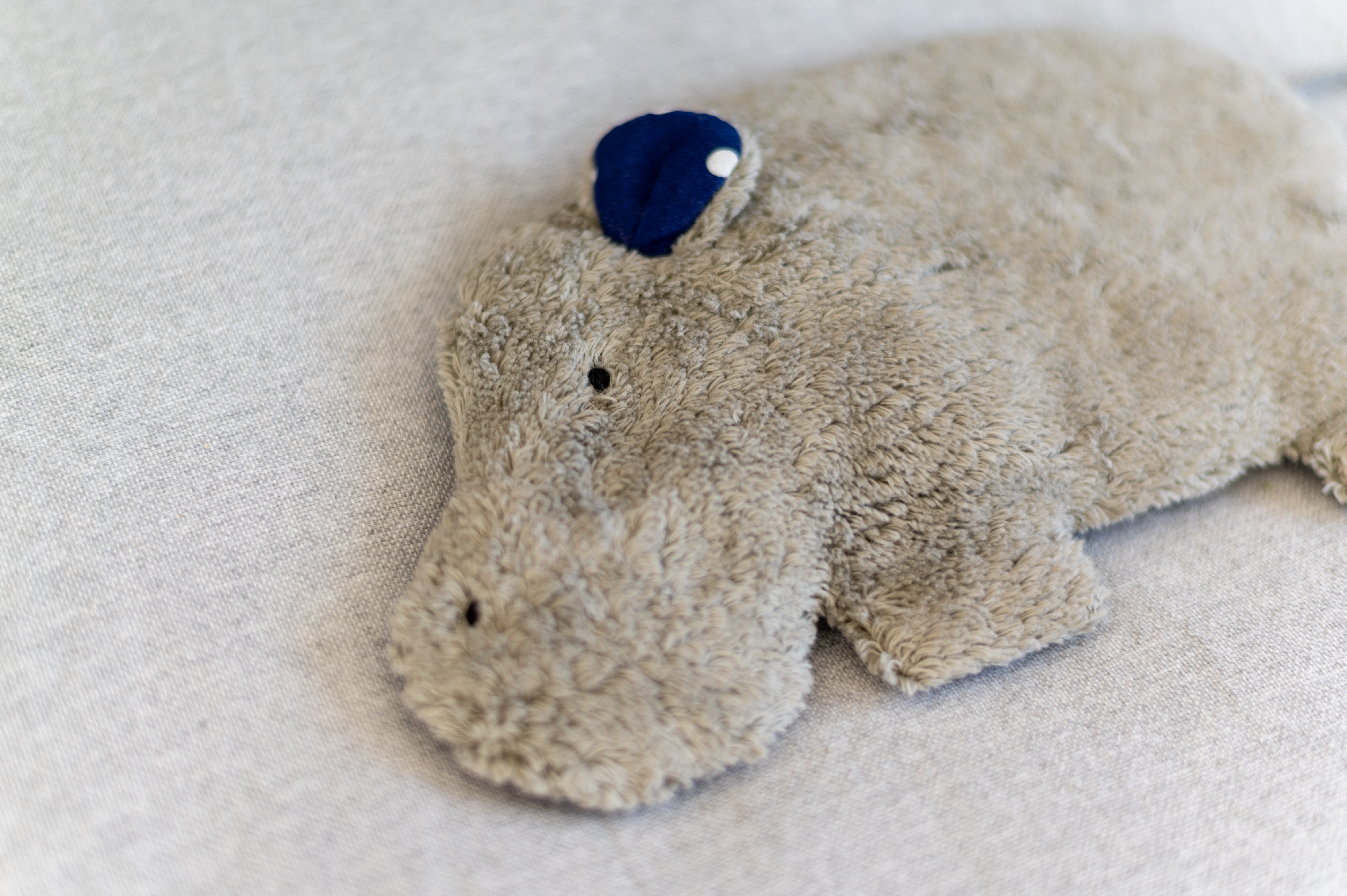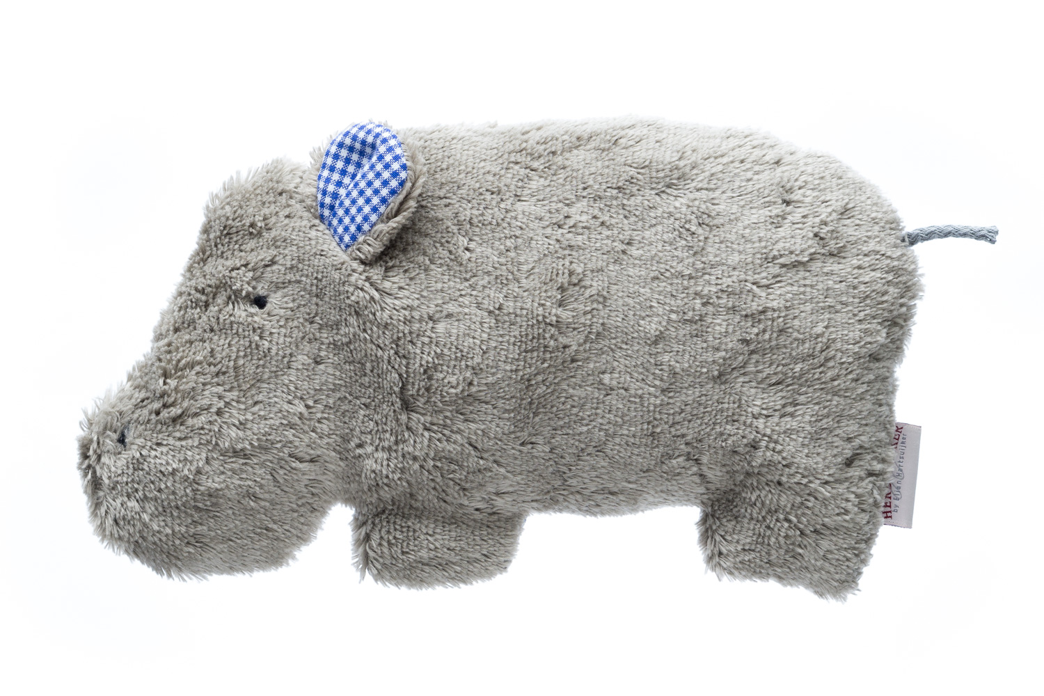 Kinderkissen Nils das Nilpferd mit Traubenkernfüllung - Bio Plüsch